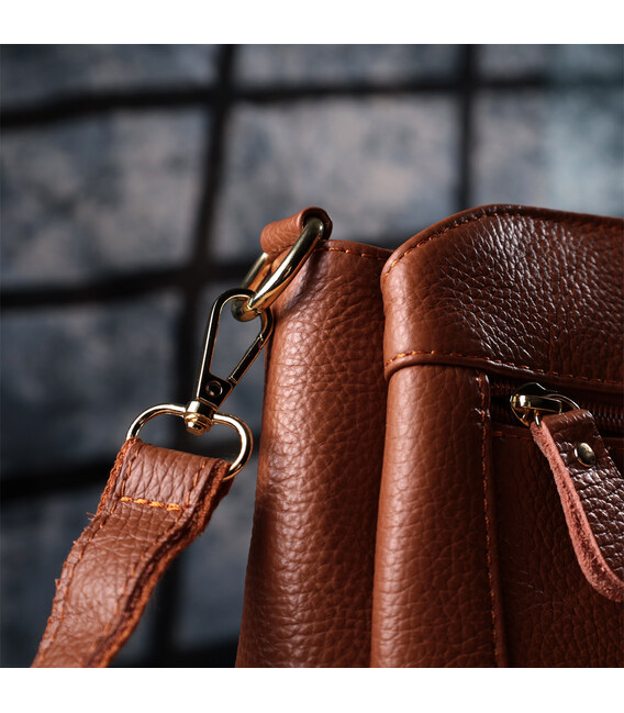 Описание Замечательная женская сумка с твердым дном из натуральной кожи Vintage sale_15108 Рыжий