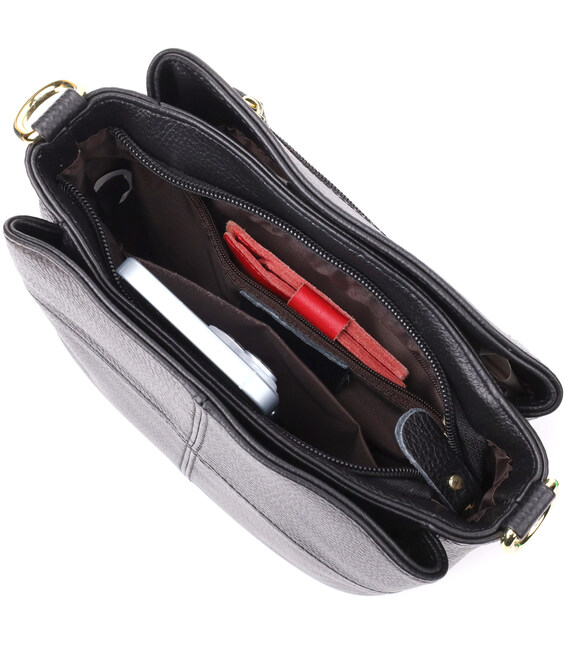 Описание Женская сумка на три отделения из натуральной кожи sale_15122 Vintage Черный