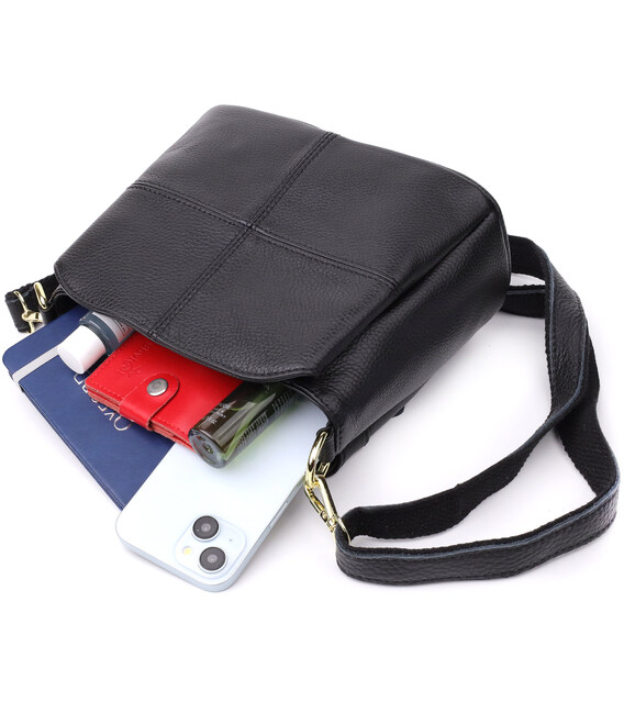 Женская сумка на три отделения из натуральной кожи sale_15122 Vintage Черный