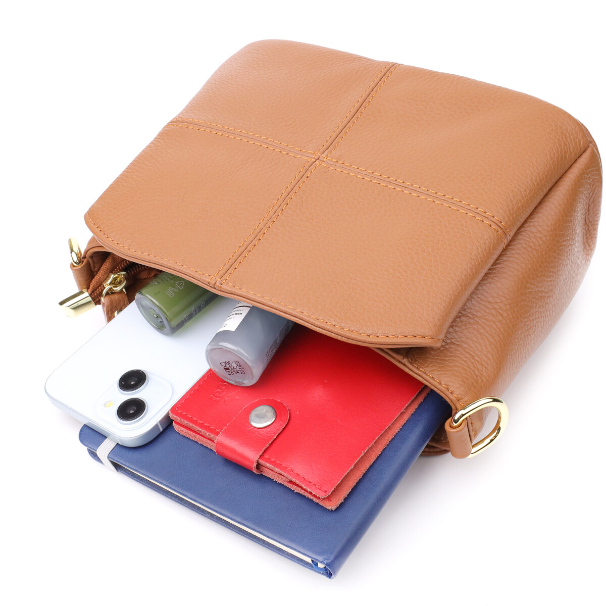 Стильная женская сумка на каждый день, выполненная из натуральной кожи флотар. Модель отличается оригинальной формой и современным дизайном, который подчеркнёт ваш стиль в любой ситуации. Продуманное внутреннее пространство и несколько удобных карманов позволяют аккуратно разместить все необходимые вещи: телефон, кошелёк, ключи и другие мелочи. Сумка идеально подойдёт как для работы, так и для вечерних мероприятий. Натуральная кожа высокого качества устойчива к износу и не требует сложного ухода, а значит, изделие прослужит вам долго, сохраняя свой привлекательный вид. Эта модель станет отличным подарком для девушки или женщины, которая ценит практичность, комфорт и элегантность.