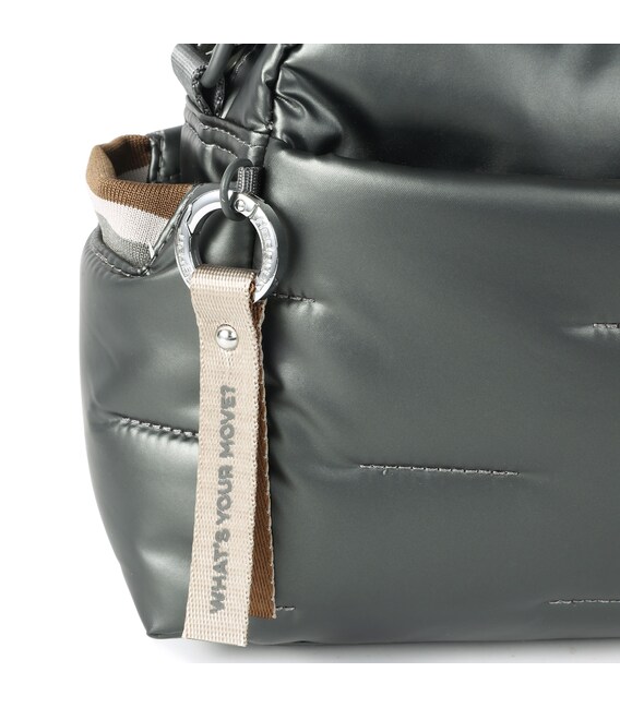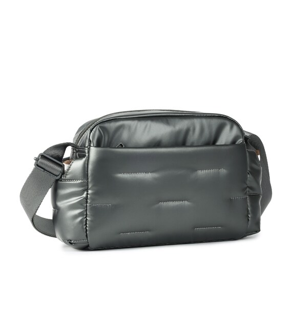 Вместительная, дутая сумка через плечо, освобождает руки и дает возможность быстро воспользоваться предметами первой необходимости в дороге или каждый день. Оснащена тремя отделениями на молнии и боковыми карманами для мелочей с карабином для ключей. В основном отделении 2 небольших кармана и съёмная, водоотталкивающая косметичка на молнии. Выполнена из плотного 100% polyester.