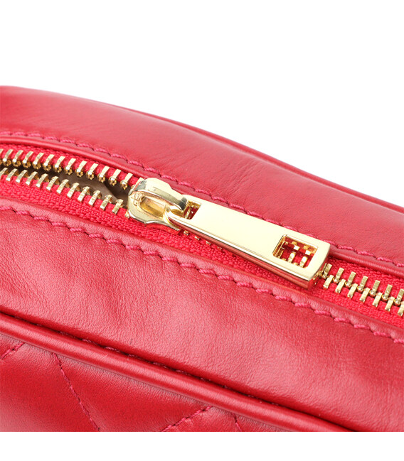 Компактная сумка из натуральной кожи в насыщенном красном цвете. Стеганая ромбами поверхность подчеркивает утонченный дизайн и добавляет аксессуару элегантности. Одно основное отделение позволяет удобно разместить все самое необходимое, сохраняя компактность и легкость. Ручка-цепочка длиной 135 см делает сумку универсальной: ее можно носить как на плече, так и через плечо. Такая деталь придает аксессуару современный характер и завершает образ стильной женщины.