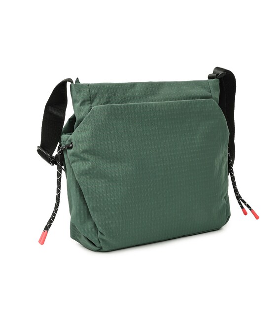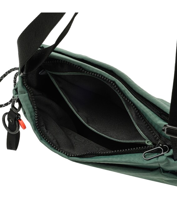 Удобная сумка-кроссовер. изготовлена из переработанной ткани. Оснащена основным отделением на молнии с отделом для смартфона и дополнительным карманом на молнии. Снаружи оснащена карманами по бокам, для предметов первой необходимости. На заднем кармане изделия предусмотрена утопленная молния, плотно прилегающая к телу, как дополнительное средство безопасности. Также, при необходимости сумка расширяется и имеет боковые карманы для бутылки/зонтики. Сумку можно носить благодаря регулируемому удлинению ремня.