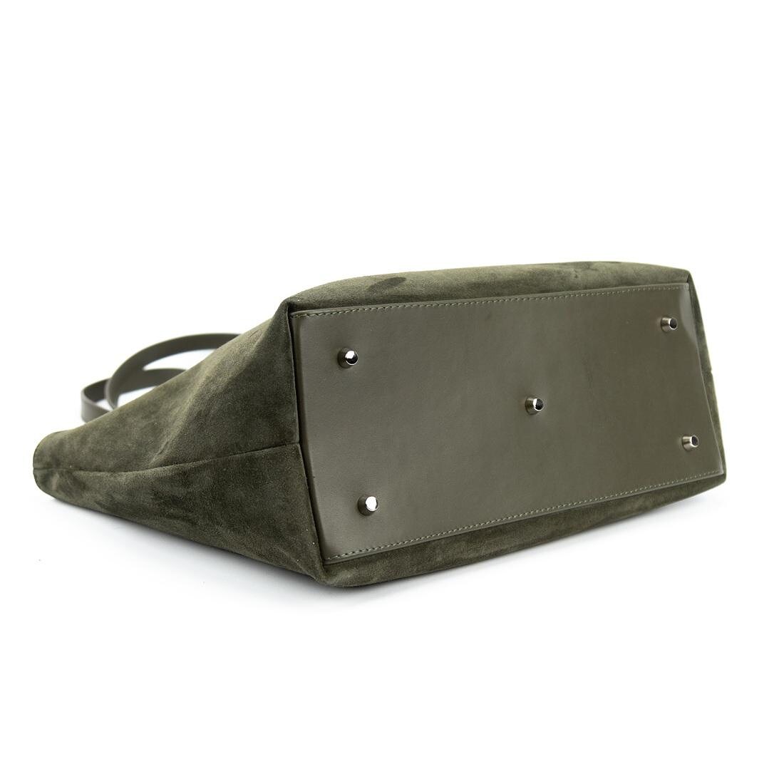 Сумка женская вместительная шоппер из натуральной замши.Размер см: 32 ширина внизу 41 ширина сверху 28 высота 13 глубинаМодель достаточно большая и вместительная, позволяет взять все необходимое с собой.Сумка имеет одно большое основное отделение на молнии, внутри него есть карман-перегородка на змейке, которая делит ее на 2 одинаковые части. Также внутри находятся небольшие кармашки для удобного размещения мелких вещей.Кроме коротких ручек у этой модели есть более длинные, все несъемные, вшитые типы.Подкладка: текстиль Цвет изделия: олива Цвет фурнитуры: серебро Материал: натуральная замша Нашли эту модель дешевле? Свяжитесь с нами, и мы предложим Вам самую низкую цену в Украине, потому что производитель этого товара.