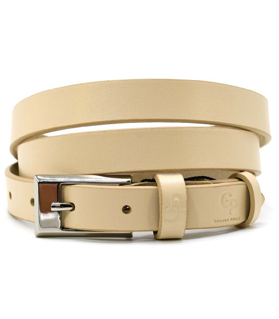 Описание Ремінь жіночий тонкий Grande Pelle 24330030033 у бежевому кольорі.