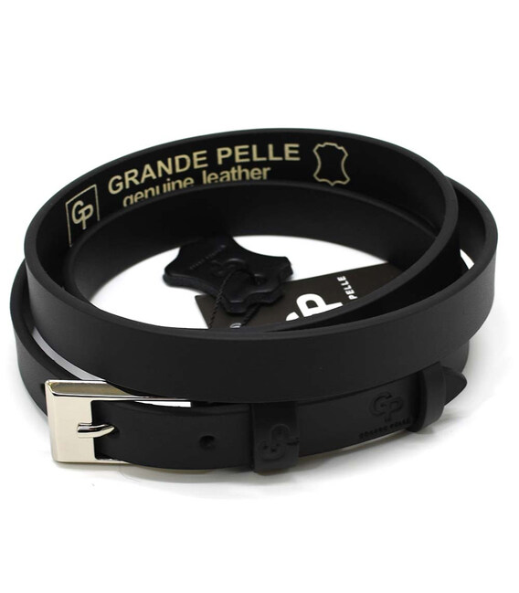 Описание Ремінь жіночий тонкий Grande Pelle 210300300 в чорному кольорі.