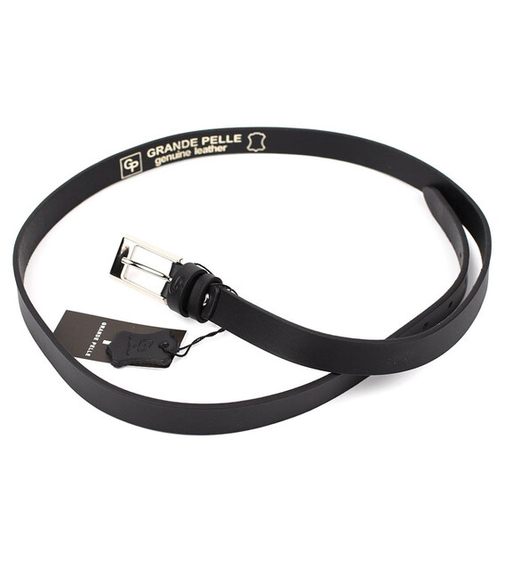 Описание Ремінь жіночий тонкий Grande Pelle 21030030033 у чорному кольорі.