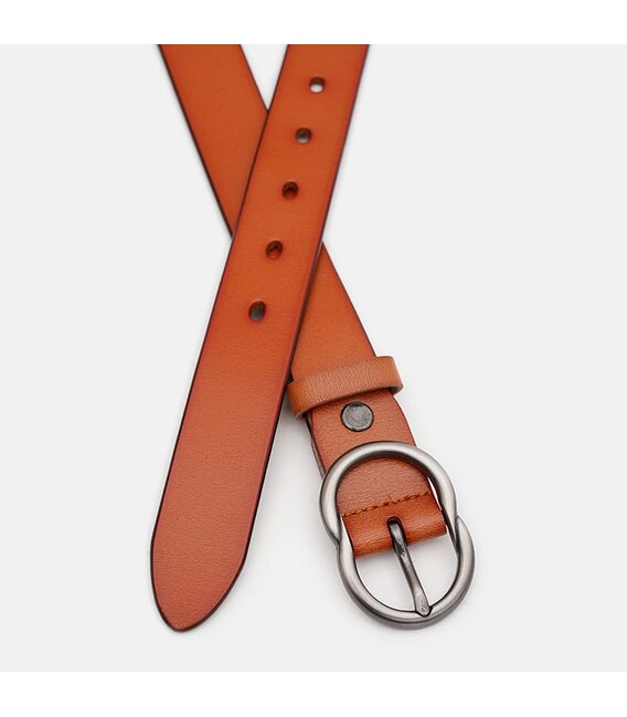 Женский кожаный ремень. Качественные материалы, стильная пряжка и аккуратный внешний вид. Ремень из натуральной кожи и металлической фурнитуры. Лицевая сторона ремня защищена от влаги, жира и агрессивных сред. Уход – минимальный (сухая чистка). В случае необходимости ремень можно укоротить самостоятельно до нужной вам длины.