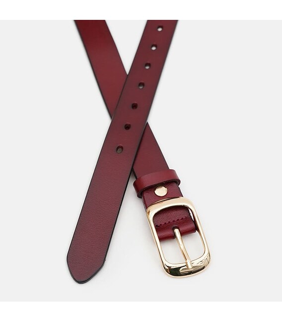 Женский кожаный ремень. Качественные материалы, стильная пряжка и аккуратный внешний вид. Ремень из натуральной кожи и металлической фурнитуры. Лицевая сторона ремня защищена от влаги, жира и агрессивных сред. Уход – минимальный (сухая чистка). В случае необходимости ремень можно укоротить самостоятельно до нужной вам длины.