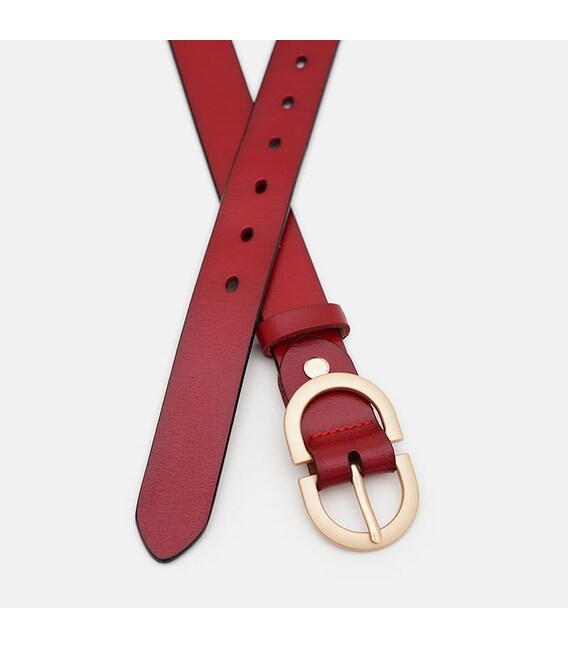 Женский кожаный ремень. Качественные материалы, стильная пряжка и аккуратный внешний вид. Ремень из натуральной кожи и металлической фурнитуры. Лицевая сторона ремня защищена от влаги, жира и агрессивных сред. Уход – минимальный (сухая чистка). В случае необходимости ремень можно укоротить самостоятельно до нужной вам длины.