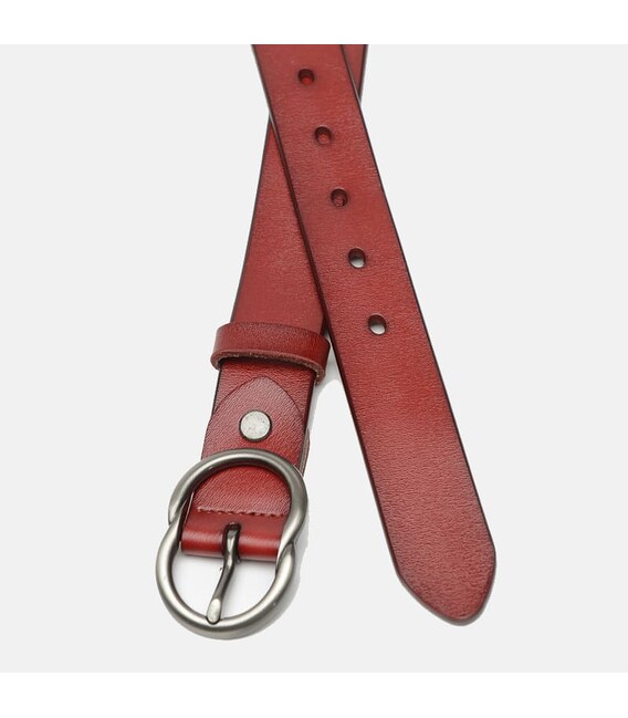 Женский кожаный ремень. Качественные материалы, стильная металлическая пряжка и аккуратный внешний вид. Ремень выполнен из натуральной кожи и металлической фурнитуры. Лицевая сторона ремня защищена от влаги, жира и агрессивных сред. Уход – минимальный (сухая чистка). При необходимости, ремень можно укоротить до нужной вам длины.