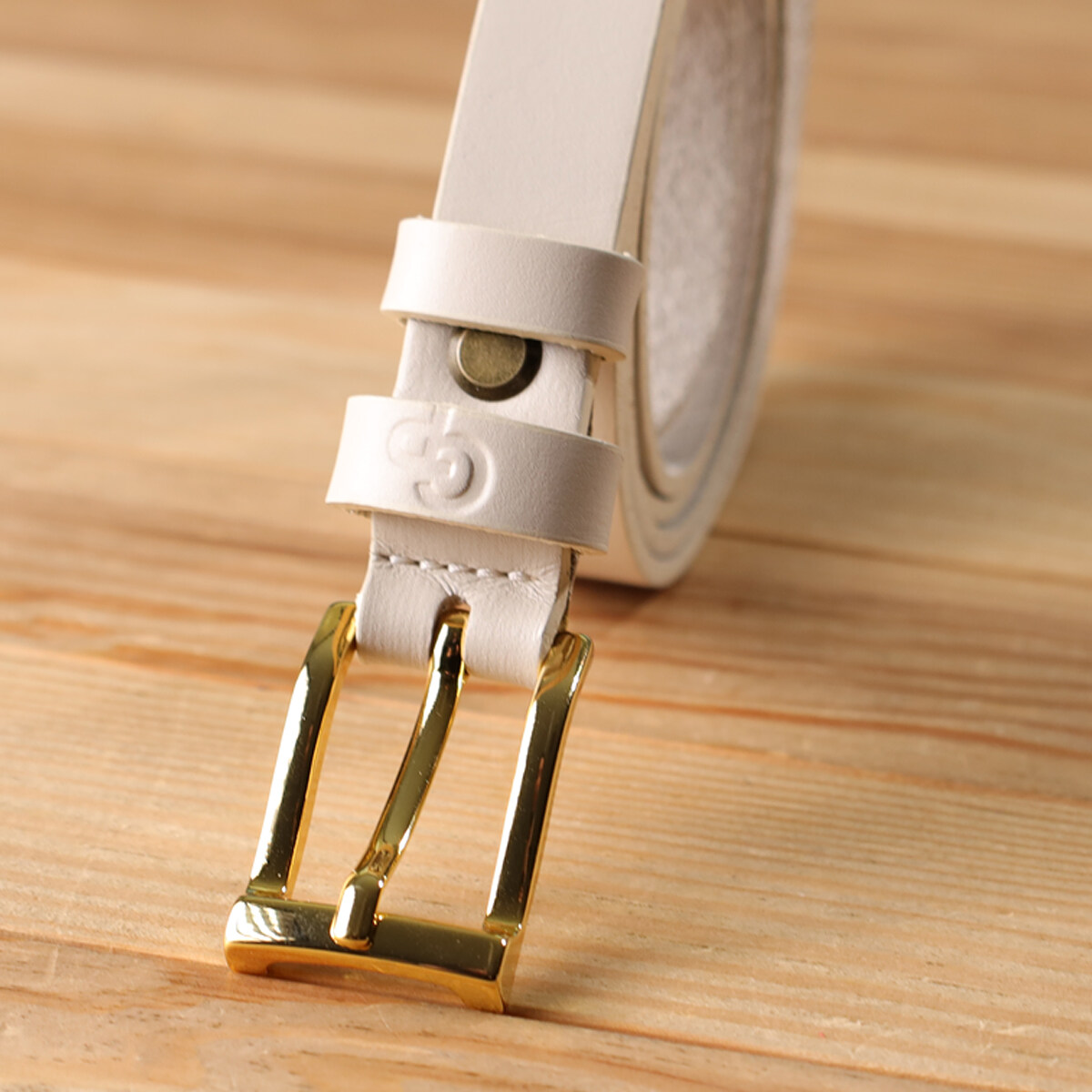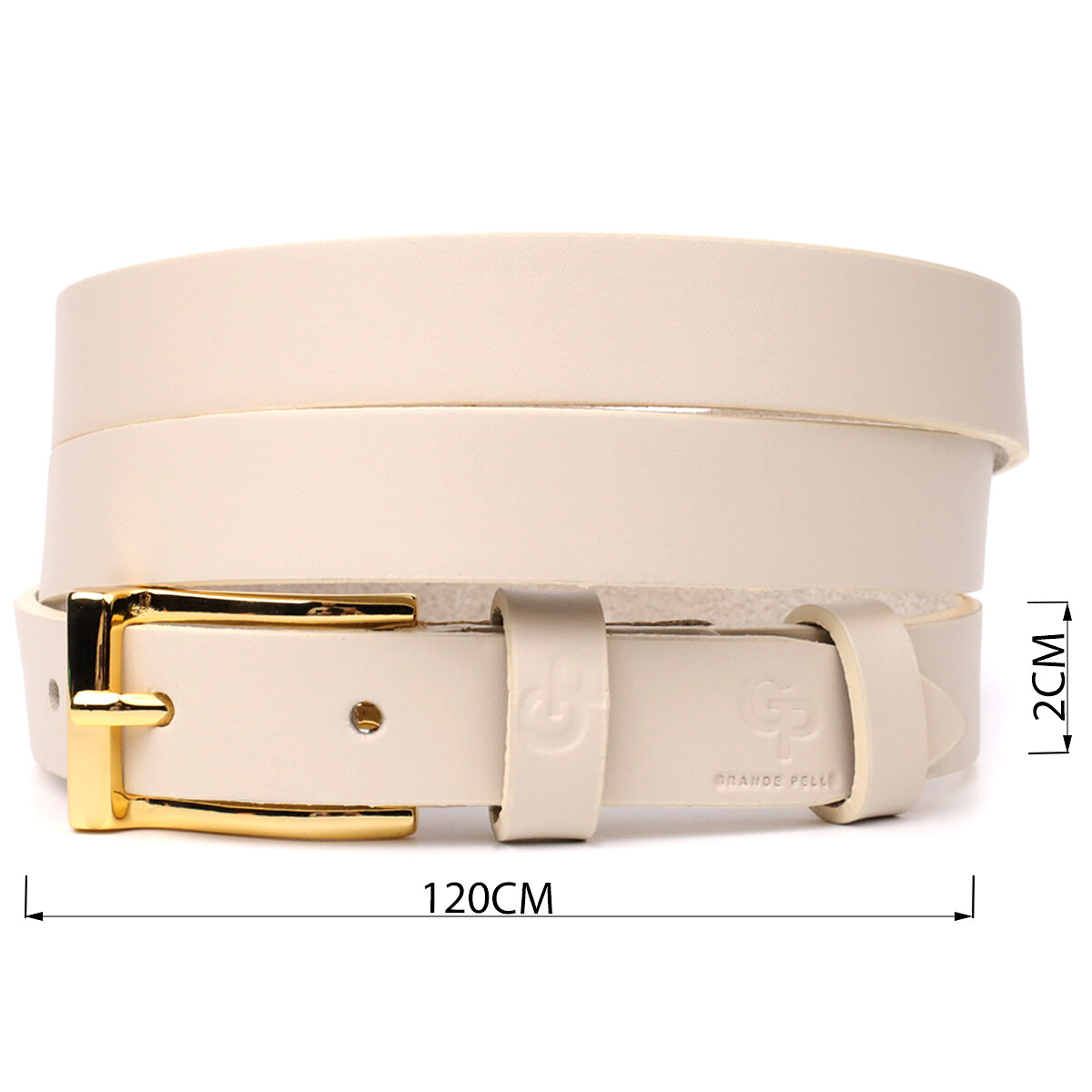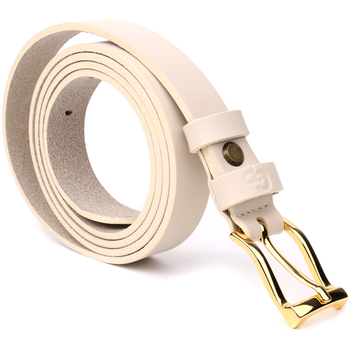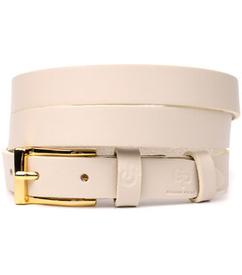 Молочный цвет придает ремню мягкость и утонченность, идеально подходя как для повседневных, так и для деловых комплектов. Пряжка под желтое золото добавляет изысканности, а тисненый логотип бренда подчеркивает премиальное качество и оригинальность изделия.