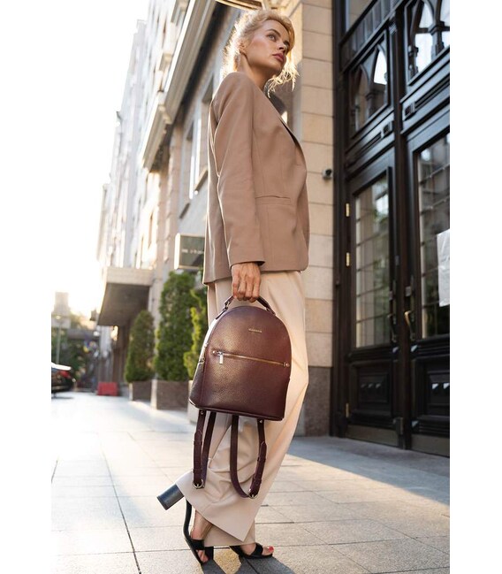 Самыми популярными аксессуарами сегодня являются рюкзаки и сумочки крос-боди. Именно поэтому у нас родилась идея создать универсальную модель-трансформер. Представляем Вам наш новый мини-рюкзак благородного цвета марсала, который с легкостью превращается в изысканную и стильную плечевую сумку. Для этого всего лишь требуется перестегнуть одну лямку в положение плечевого ремня. Длину плечевого ремня можно регулировать, что дает возможность носить сумку разными способами.Для удобства переноски также есть короткая ручка на верхней части рюкзака.Стильный и удобный мини-рюкзак изготовлен вручную из натуральной кожи высокого качества.Основное отделение застегивается на молнию. Внутри есть карман для мелких предметов. Также имеется наружный карман на застежке.Также хочется обратить внимание на насыщенный и глубокий цвет марсала в котором выполнена эта модель. Оттенок, похожий на дорогое выдержанное сицилийское вино, прекрасно будет сочетаться с изумрудным, серым, черным, синим горчичным и другими цветами.Этот стильный и практичный аксессуар наверняка станет одним из любимых в Вашем гардеробе.Мини-рюкзак Kylie является ярким представителем нашей коллекции «Geometry».Посмотрев вокруг себя, вы удивитесь, сколько линий и строгих форм нас окружает. Мы живём в настоящей геометрической эре. Круги, квадраты, эллипсы встречаются буквально на каждом шагу, неважно на улице вы пребываете или в помещении.И мы особым образом решили влиться в такую действительность, создав коллекцию с говорящим названием «Geometry».«Geometry» - это изделия, отличающихся предназначением, формой и цветовым решением. Среди них вы найдете бессмертную классику и необузданную феерию модерна.Только красота линий, четкость формы и стиль.Вдохновляйтесь с нами!В подарок к рюкзаку наши мастера подготовили холлер для наушников и проводов, с которым Вы забудете о спутанных проводах.Гарантия на рюкзак - 3 года с момента покупки.Фурнитура и комплектация может быть изменена производителем