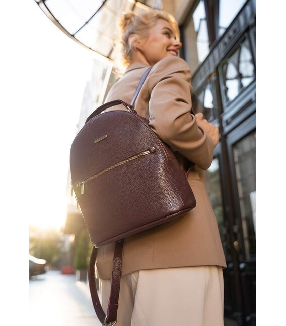 Описание Кожаный женский мини-рюкзак Kylie Марсала