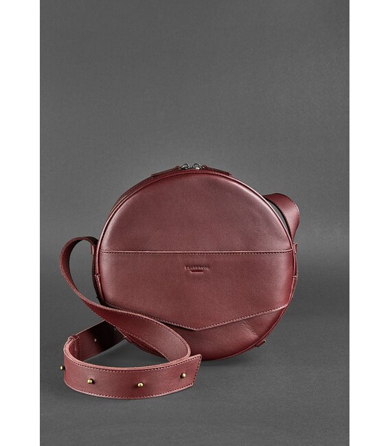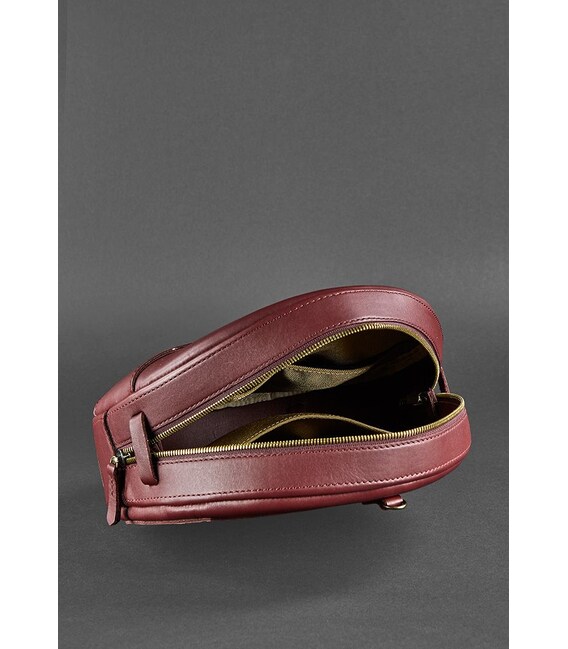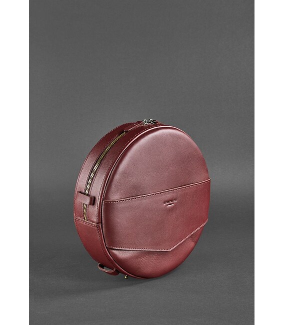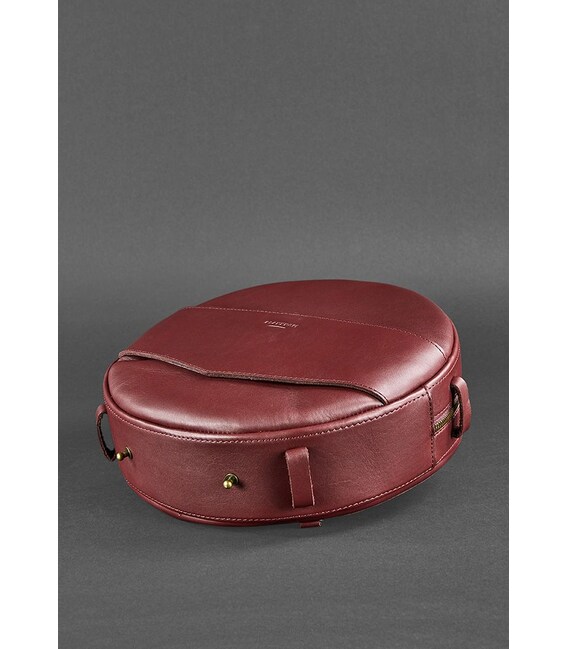 Кожаная женская круглая сумка-рюкзак Maxi бордовая