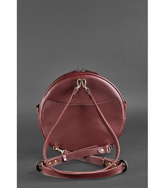 Описание Кожаная женская круглая сумка-рюкзак Maxi бордовая
