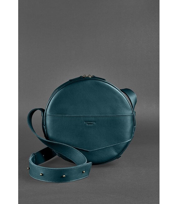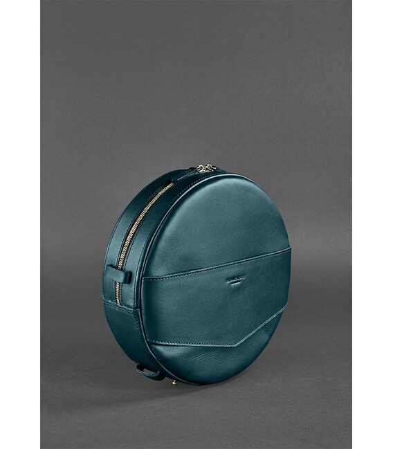Кожаная женская круглая сумка-рюкзак Maxi зеленая