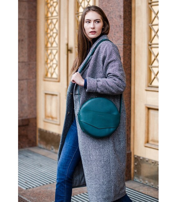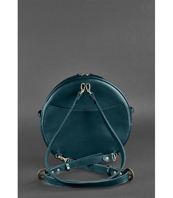 Описание Кожаная женская круглая сумка-рюкзак Maxi зеленая