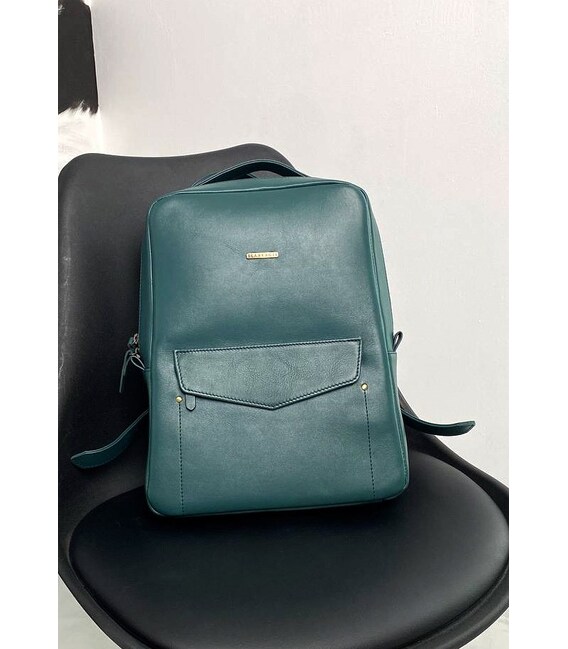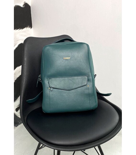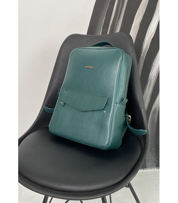 Описание Кожаный женский городской рюкзак на молнии Cooper зеленый краст