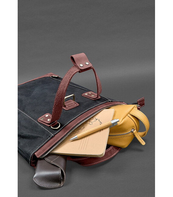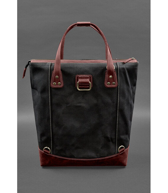 Сумка-рюкзак из канваса и натуральной бордовой кожи