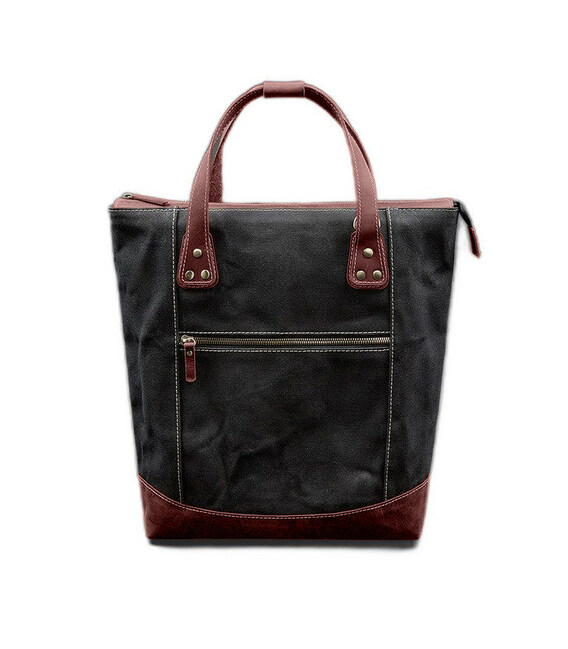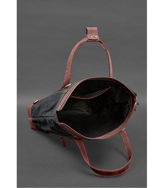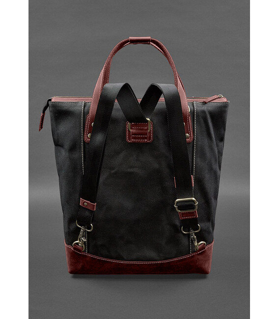 Описание Сумка-рюкзак из канваса и натуральной бордовой кожи