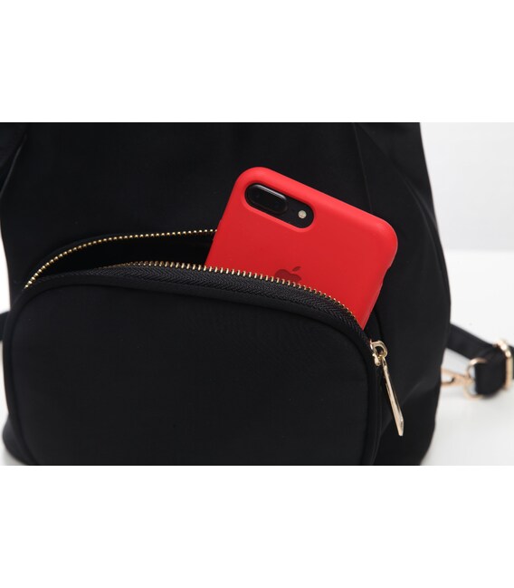 Современный женский рюкзак компактного размера на каждый день. Аксессуар имеет оригинальный классический дизайн, который не привязывает вас к определенному стилю. Модель дополнена блестящей золотистой фурнитурой и очень приятная на ощупь. В аксессуар легко поместится косметичка, деньги, ежедневник или любимая книга, а также другие необходимые женские мелочи. Очень хорошая модель на каждый день. Рюкзак выполнен из плотного нейлона и прослужит вам сравнительно долго. Несмотря на свой небольшой размер аксессуар очень вместительный и удобный. Рюкзак будет идеальным подарком для любой девушки.