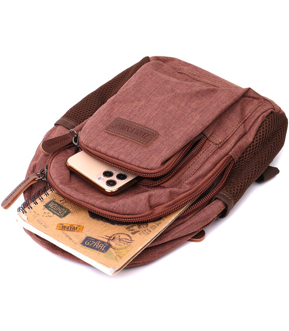 Небольшой рюкзак из полиэстера с большим количеством карманов Vintage 22150 Коричневый