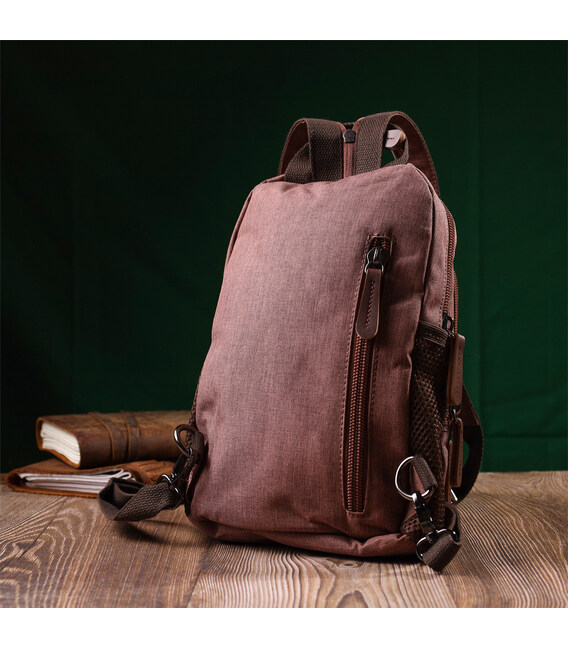 Описание Небольшой рюкзак из полиэстера с большим количеством карманов Vintage 22150 Коричневый