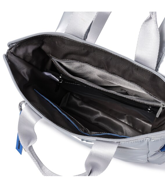 Вместительный, дутый рюкзак-идеальный спутник на каждый день. Оснащен большим основным отделением с внутренними карманами и съёмной косметичкой. С внешней стороны расположен карман на молнии, также есть боковые карманы для зонтика или бутылки с карабином для ключей. Выполнен из плотного 100% polyester.