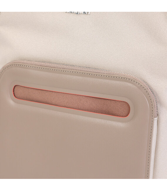Женский рюкзак, не большого размера, который благодаря своему универсальному дизайну уместно будет выглядеть в любом Вашем образе. Оснащений двумя основными отделами на молнии, соединяющимися между собой скрытым магнитом, для обеспечения комфортного использования и эстетичного вида изделия. В одном из отделов присутствует дополнительная карман с RFID-защитой и крючок для ключей. Снаружи, оснащены не большими карманами, на передней и задней сторонах + изящная съемная вешалка для ключей. Дополнительно имеет в комплекте съемную косметичку. Выполнен из 100% переработанного полиэстера PET (полиэфирная ткань из переработанных пластиковых бутылок).