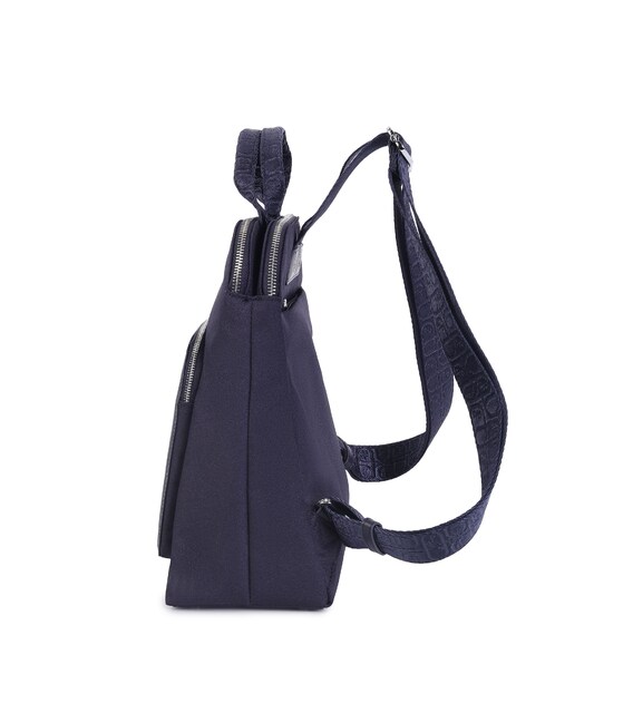 Женский рюкзак, не большого размера, который благодаря своему универсальному дизайну уместно будет выглядеть в любом Вашем образе. Оснащений двумя основными отделами на молнии, соединяющимися между собой скрытым магнитом, для обеспечения комфортного использования и эстетичного вида изделия. В одном из отделов присутствует дополнительная карман с RFID-защитой и крючок для ключей. Снаружи, оснащены не большими карманами, на передней и задней сторонах + изящная съемная вешалка для ключей. Дополнительно имеет в комплекте съемную косметичку. Выполнен из 100% переработанного полиэстера PET (полиэфирная ткань из переработанных пластиковых бутылок).