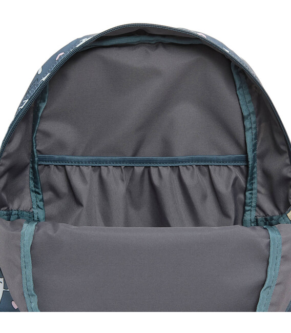 Усередині є два окремі відділення, які вмістять книги, зошити та канцелярське приладдя. Також спереду є кишеня для телефона й ключів і бокові відсіки для пляшки з водою.