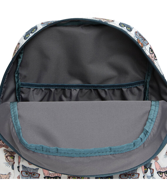 Усередині є два окремі відділення, які вмістять книги, зошити та канцелярське приладдя. Також спереду є кишеня для телефона й ключів і бокові відсіки для пляшки з водою.