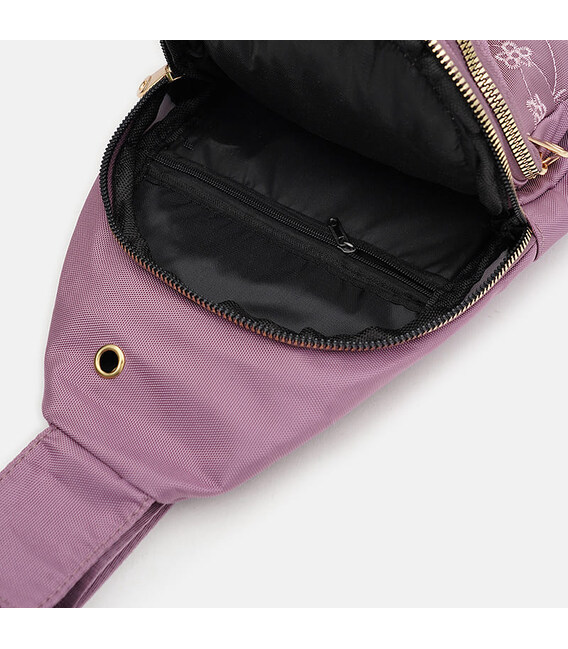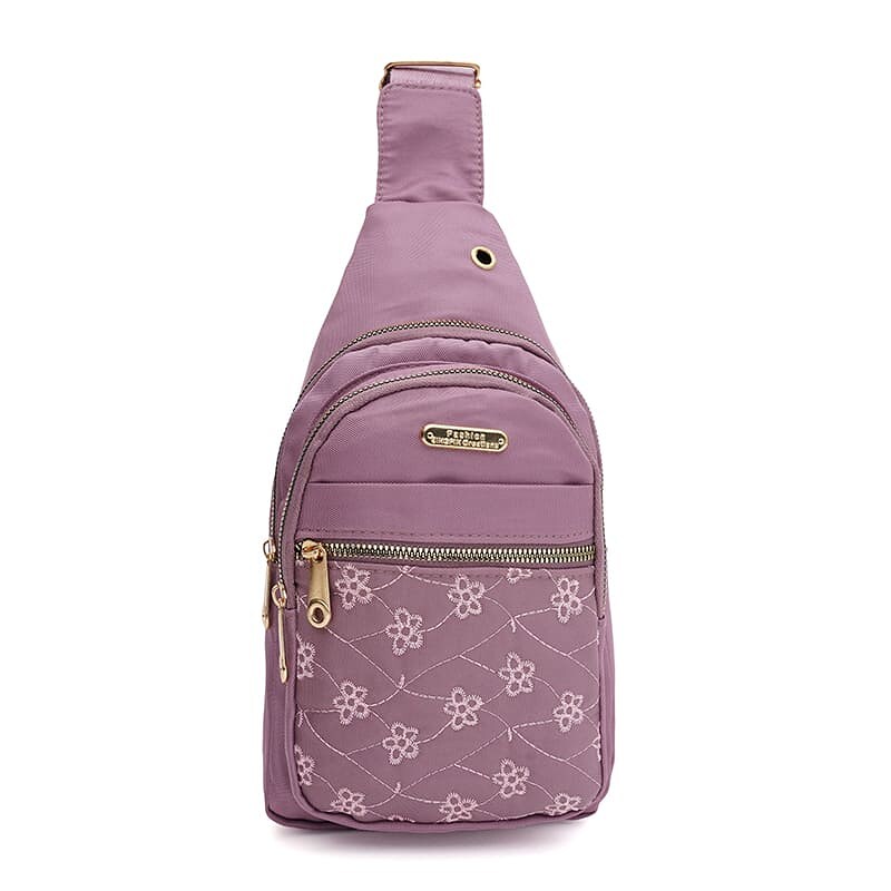 Женский рюкзак имеет 1 отдление на молнии. Внутри рюкзака есть 1 карман на молнии. С лицевой стороны- 3 кармана. Подкладка текстиль. Несъемный текстильный ремень регулируется по длине.