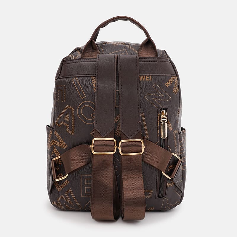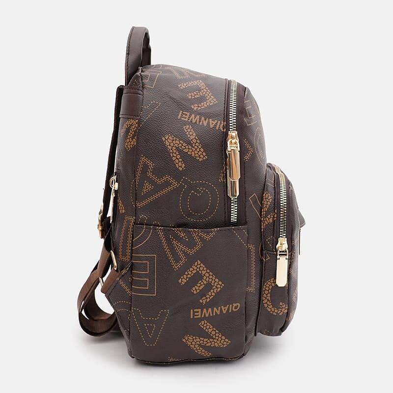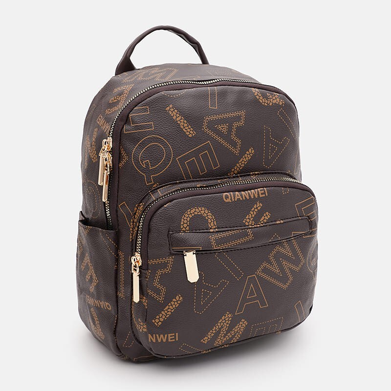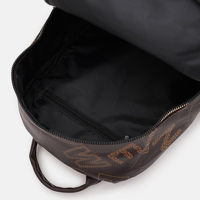 Женский рюкзак имеет 1 основное отделение, которое закрывается на молнию. С лицевой стороны - 2 кармана на молнии и 1 карман на молнии с тыльной стороны.Также есть 2 боковых кармана. Внутри имеется 1 карман на молнии. Подкладка текстиль. Ручки выполнены из искусственной кожи, плечевые ремни выполнены из текстиля+кожзам.