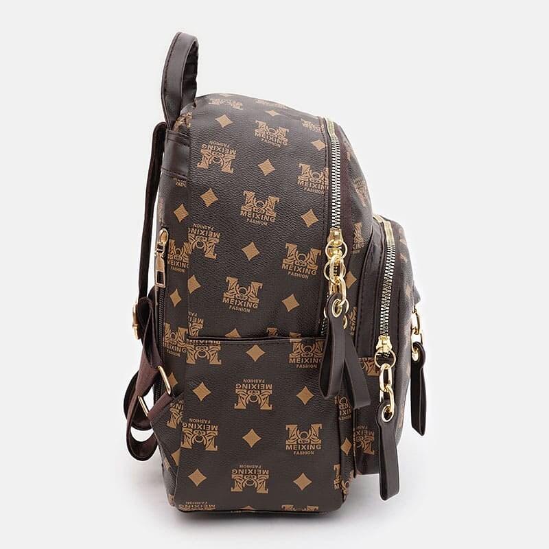 Женский рюкзак имеет 1 основное отделение, которое закрывается на молнию. С лицевой стороны -2 кармана на молнии, с тыльной-1 карман и 2 боковых кармана. Внутри - 1 карман на молнии и 2 кармана для телефона и других мелочей. Подклакдка текстиль. Ручки выполнены из искусственной кожи, плечевые ремни - из текстиля+искусственная кожа.
