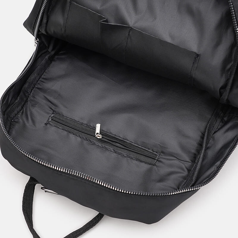 Рюкзак выполнен из прочной легкой ткани. Имеет большую вместительность, подходит для города и путешествий. Имеет 2 отделения на молнии, внутри 2 кармана. С лицевой стороны 1 карман на молнии, с тыльной -1 карман на молнии и 2 боковых кармана. Подкладка полиэстер. Плечевые ремни регулируютсся по длине. Есть крепление для чемодана.