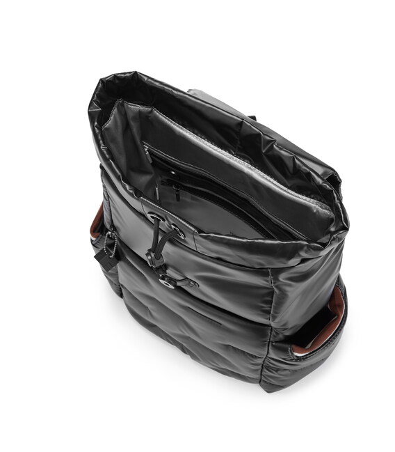 Вместительный, дутый рюкзак-идеальный спутник на каждый день. Оснащен большим основным отделением с внутренними карманами и съёмной косметичкой. С внешней стороны расположен карман на молнии, также есть боковые карманы для зонтика или бутылки с карабином для ключей. Выполнена из плотного 100% polyester.
