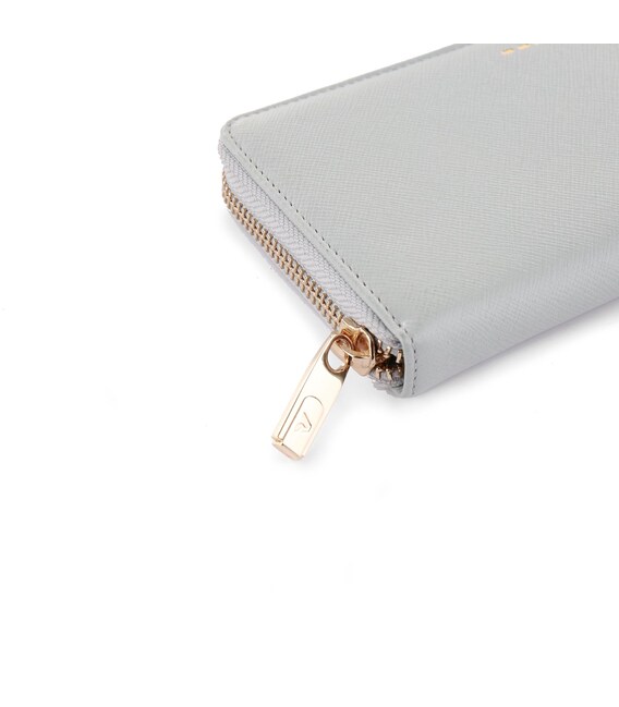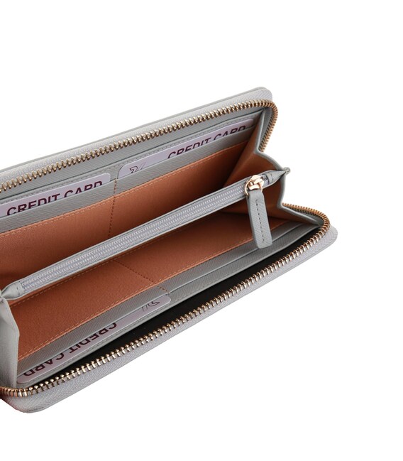 Стильный аксессуар, закрывается внешней металлической молнией, идущей по всей боковой стороне. В кошельке имеется два больших отделения для купюр в полный размер, отделение для мелочи, закрывающееся на молнию и отделения для кредитных карт с RFID-защитой от мошенничества.
