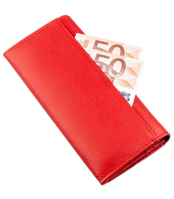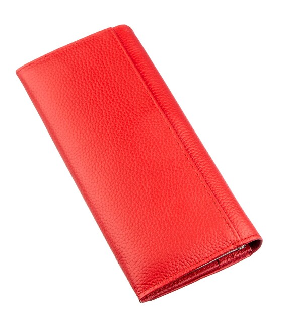 Эффектный женский кошелек для ярких и незаурядных личностей. Материал изготовления – высокопробная натуральная кожа с зернистой фактурой, на ощупь мягкая и приятная. Изюминкой кошелька является его насыщенный красный цвет с матовым оттенком. Внутри аксессуара присутствует много различных отделений, а именно: три больших отделения для купюр и банкнот, монетница на защелке, отделение на молнии по всей длине, восемь карманов для различных визиток и банковских карт. На тыльной стороне есть еще одно большое скрытое отделение. Упакован кошелек в твердую картонную коробку.