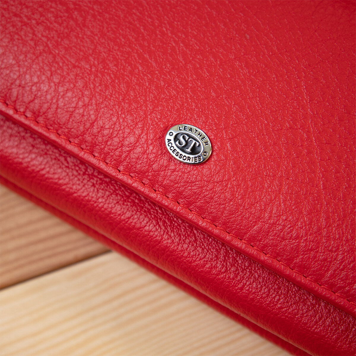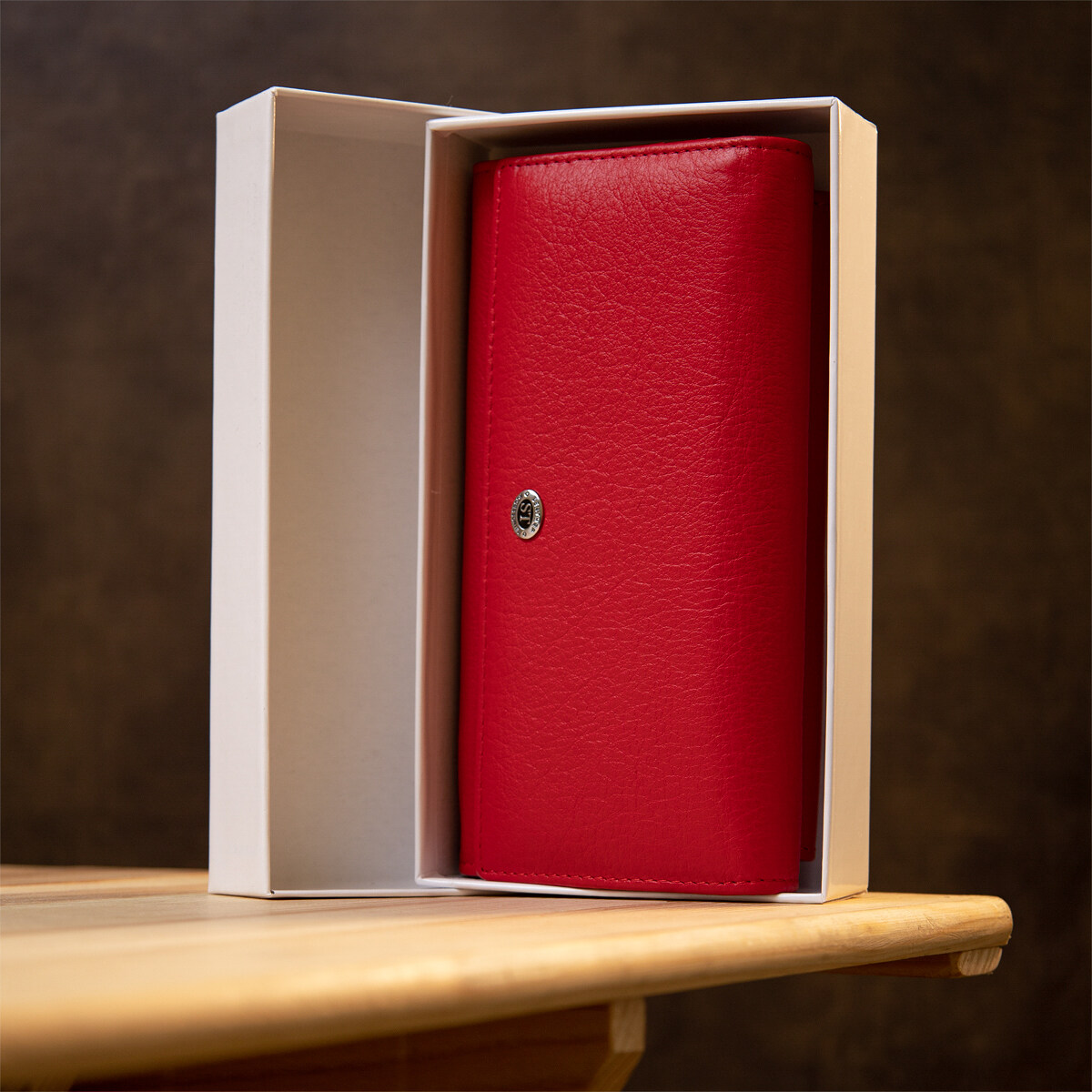 Изделие выполнено из натуральной кожи в насыщенном красном цвете. Материал приятный на ощупь, выглядит эффектно и хорошо подходит для ежедневного использования. Классический формат делает модель удобным выбором для женщин, которые ценят аккуратные и функциональные аксессуары.