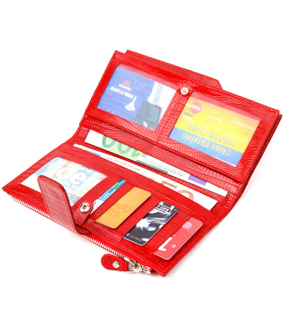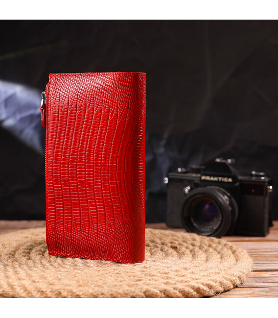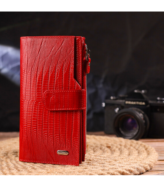 Описание Красивый женский кошелек из натуральной фактурной кожи CANPELLINI 21646 Красный