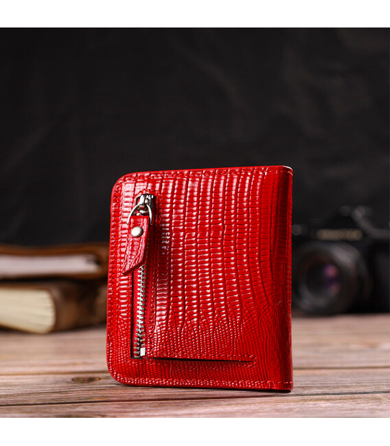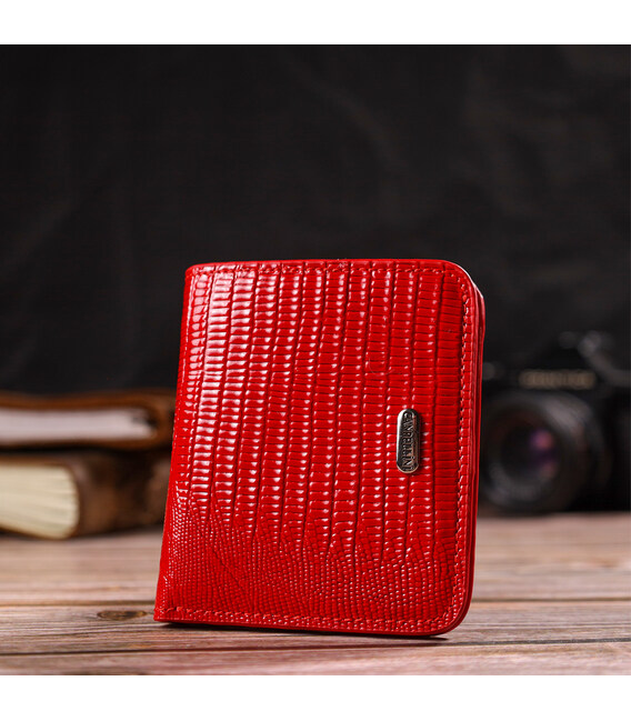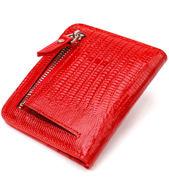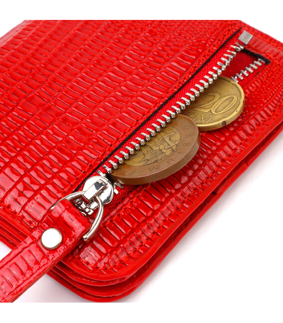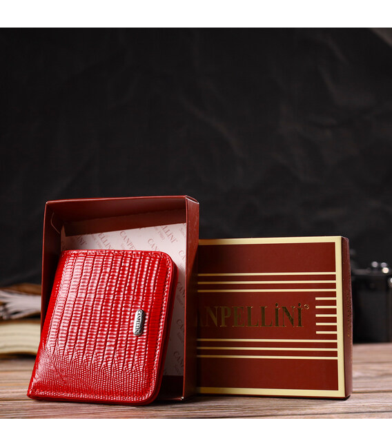 Описание Лакированный женский кошелек небольшого размера из натуральной фактурной кожи CANPELLINI 21800 Красный