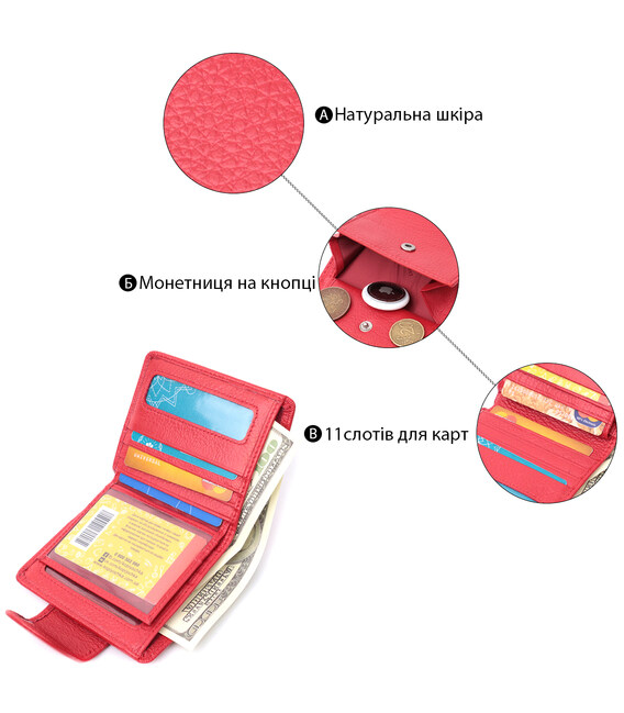 Описание Вертикальный кошелек для ярких женщин из натуральной кожи ST Leather 22702 Красный