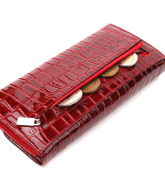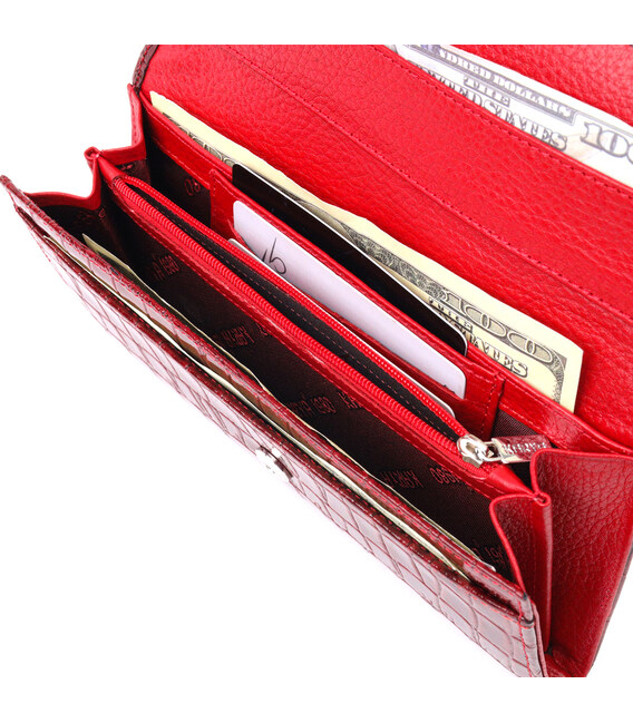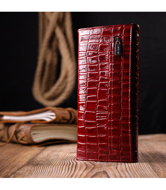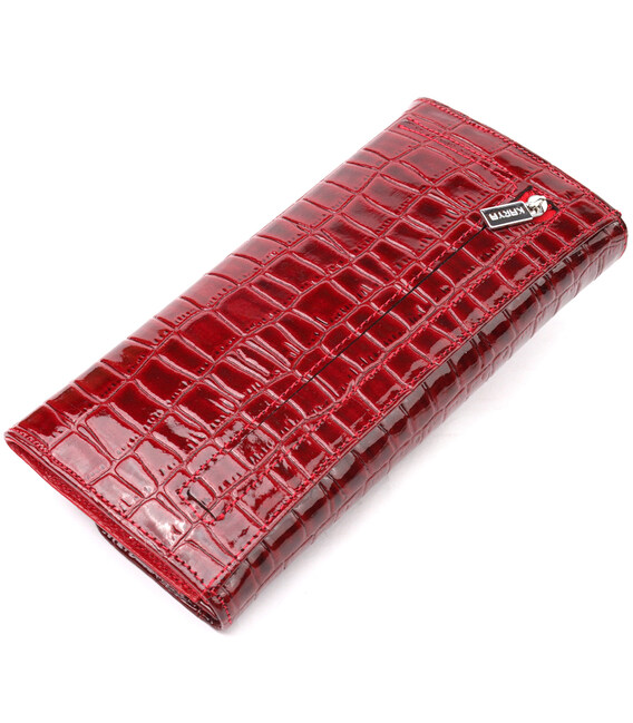 Описание Красивый женский кошелек с клапаном из фактурной кожи под крокодила KARYA 21115 Красный
