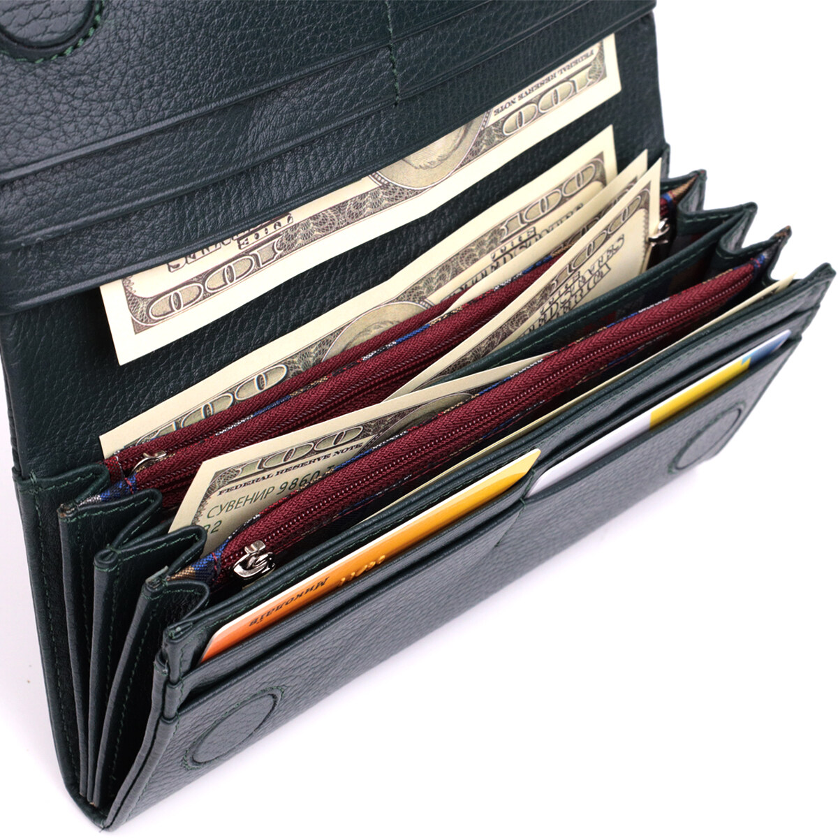 - 4 открытых кармана для купюр;