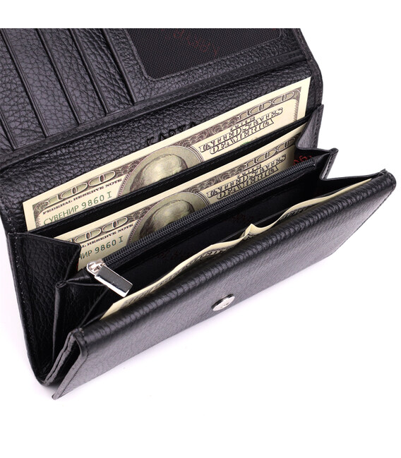 Описание Вместительный женский кошелек из натуральной кожи KARYA 22859 Черный