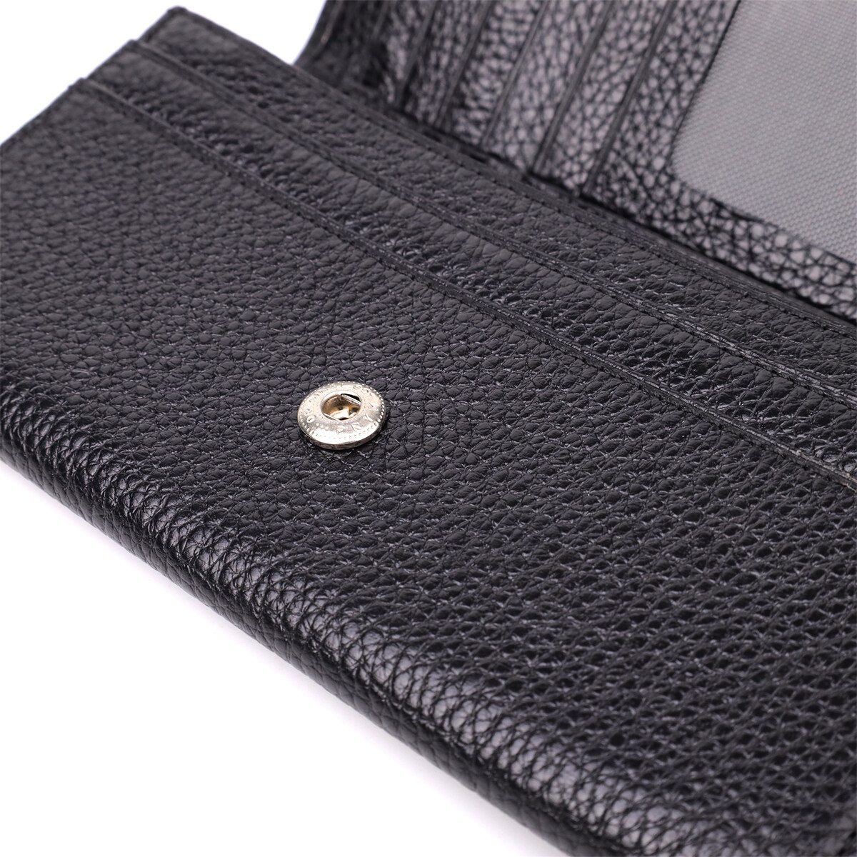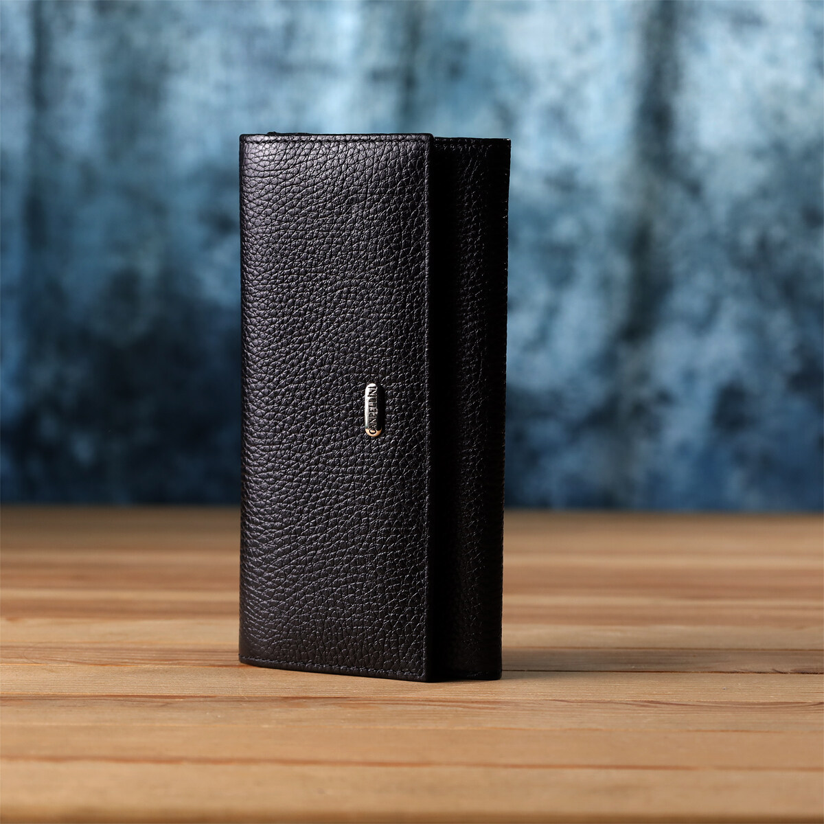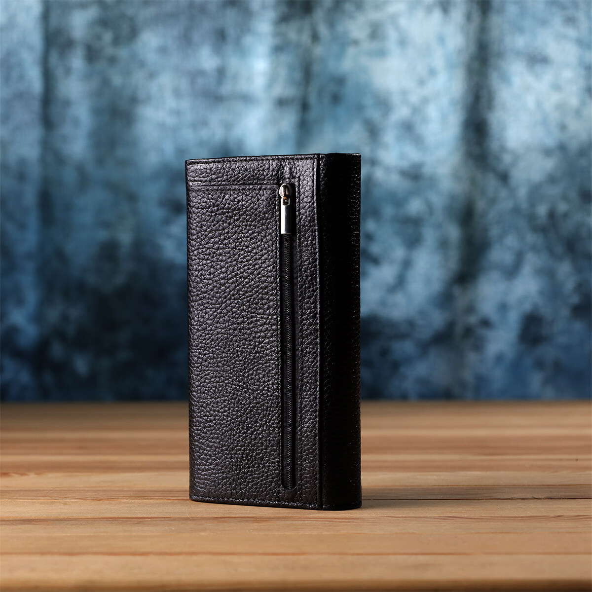 Элегантный кошелек CANPELLINI из натуральной черной кожи с выразительной крупнозернистой фактурой станет надежным и практичным аксессуаром для современного мужчины. Вместительный, он имеет несколько отделений для купюр и карт, удобные карманы для мелочей и монетницу на молнии. Металлический фирменный логотип подчеркивает статус и оригинальность изделия.