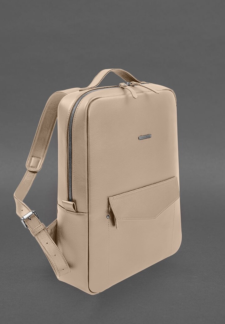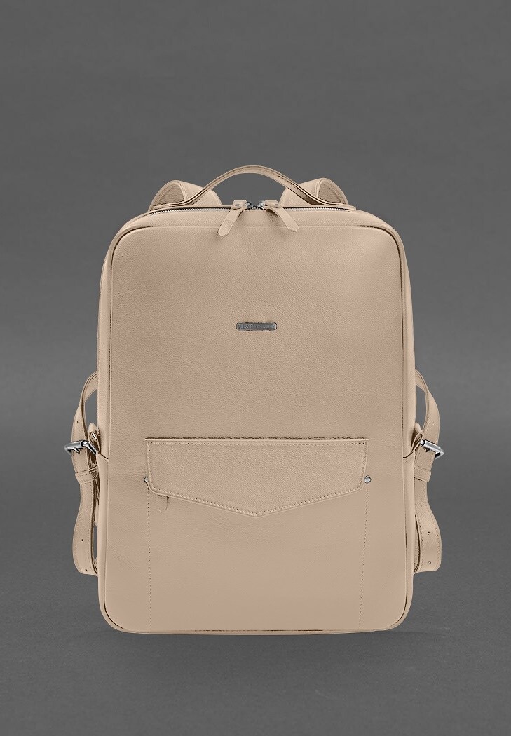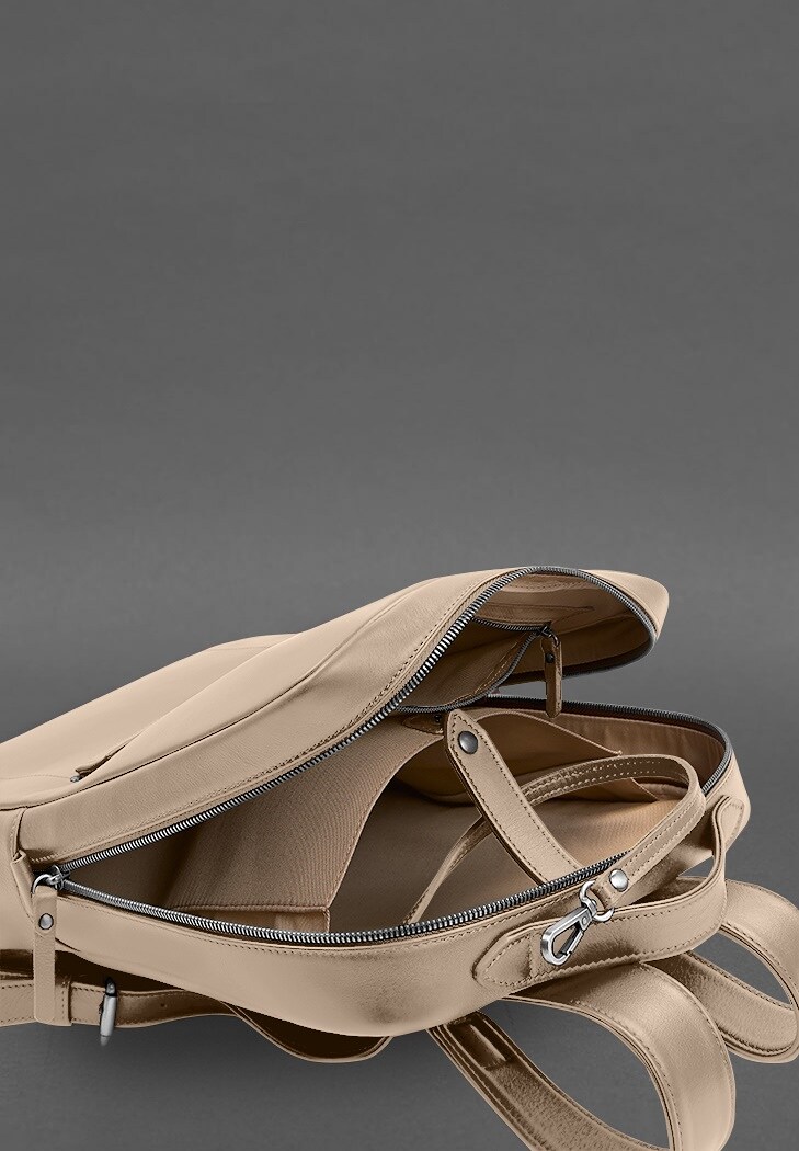 Кожаный городской рюкзак на молнии Cooper maxi светло-бежевый фото, картинка, изображение