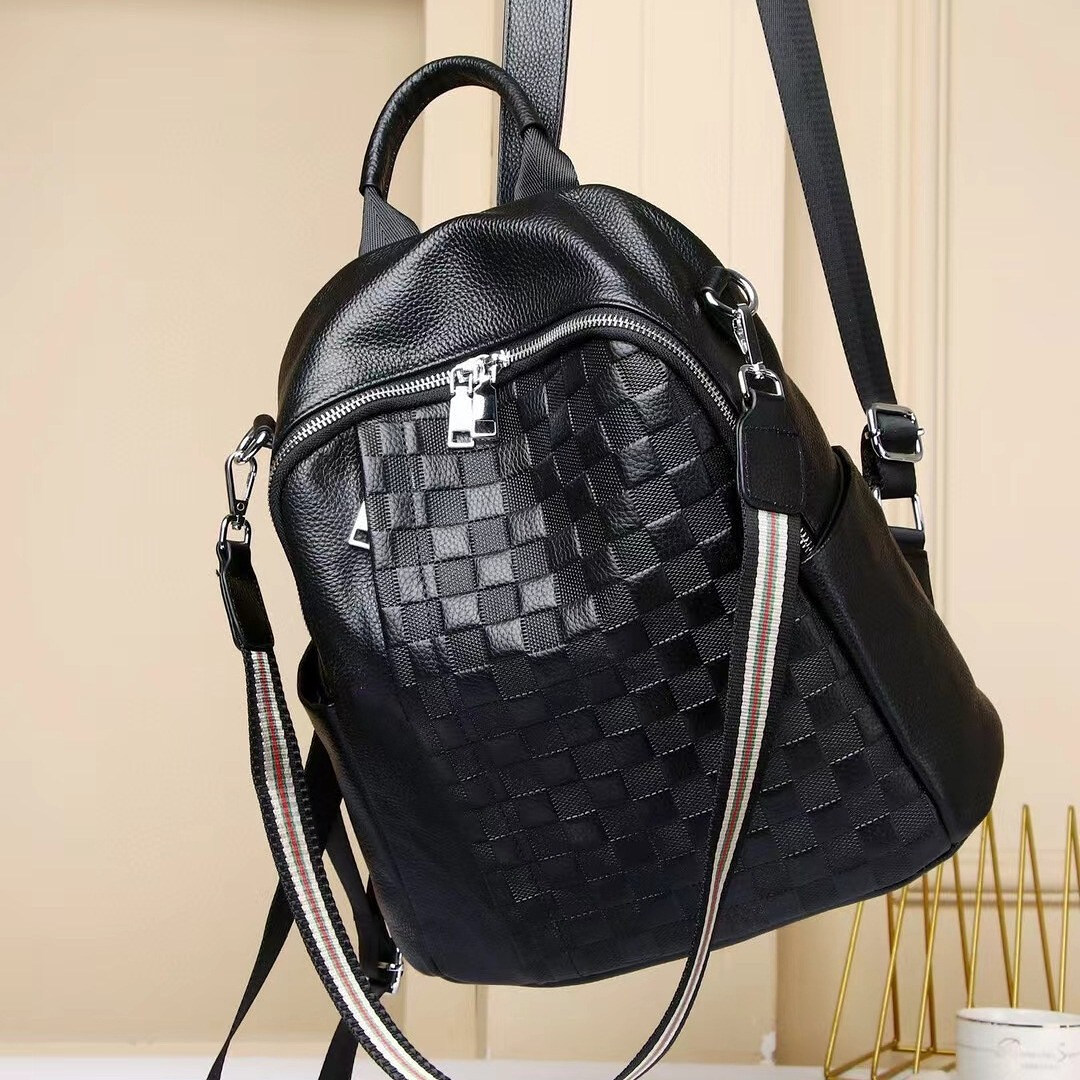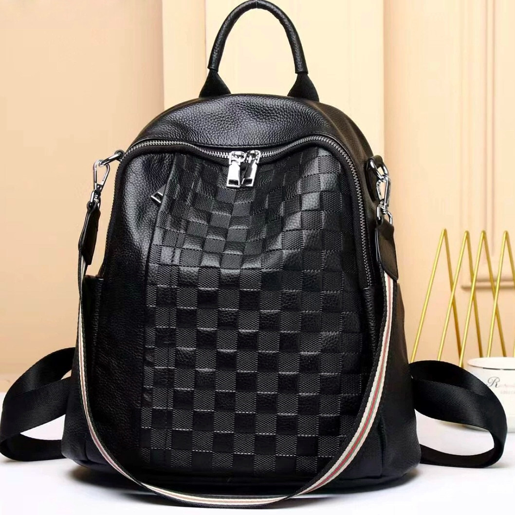 Кожаный женский рюкзак черный с тиснением 42147